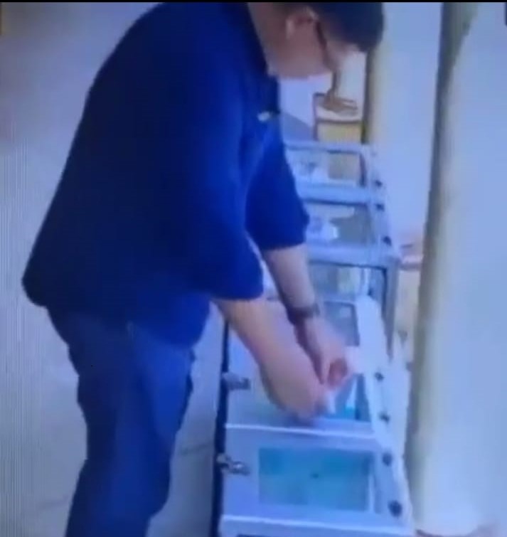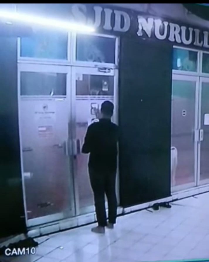 Seorang lelaki berkaca mata, berbadan tinggi tegap, gagah, berbaju biru bercelana blue jeans terlihat dari CCTV masjid nampak mengganti kode QRIS yang nempel di kotak amal di sebuah Masjid Nurul Imam Blok M Square Jakarta Selatan Lt7 Jakarta dan Masjid Nurullah Kalibata Jakarta.